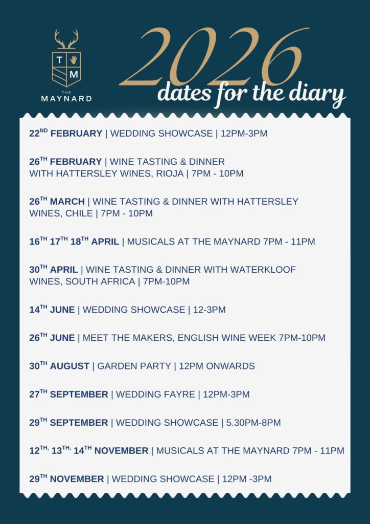 We’re delighted to share our 2026 events line-up at The Maynard, and we’re looking forward to another fantastic year ahead.