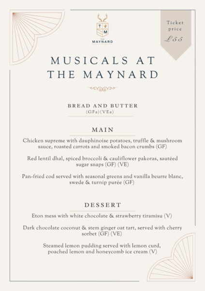 Musicals at The Maynard brings together extraordinary talent, unforgettable music and the warm, intimate atmosphere of cabaret dining, all set against the beautiful backdrop of the Peak District.